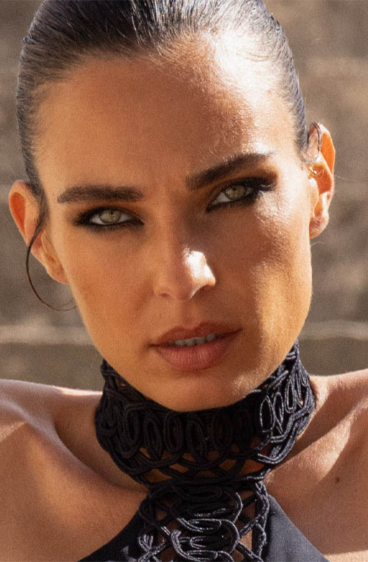 Designed to transcend the shoreline, Athena transforms effortlessly into an evening statement. The sculpted crop top commands attention like modern armor — especially when paired with the matching soutache cuffs. The intricate embroidery wraps the body in deliberate ornamentation, evoking the strength and sensuality of a Greek goddess reborn in contemporary form.